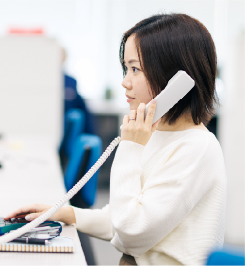 事故に遭われたお客さまの専任担当者として、担当のご挨拶から事故解決、保険金のお支払いまでを行います。対応する事案や業務の幅を広げることで、部門内の基幹業務を推進します。